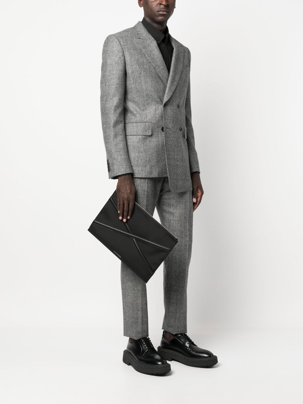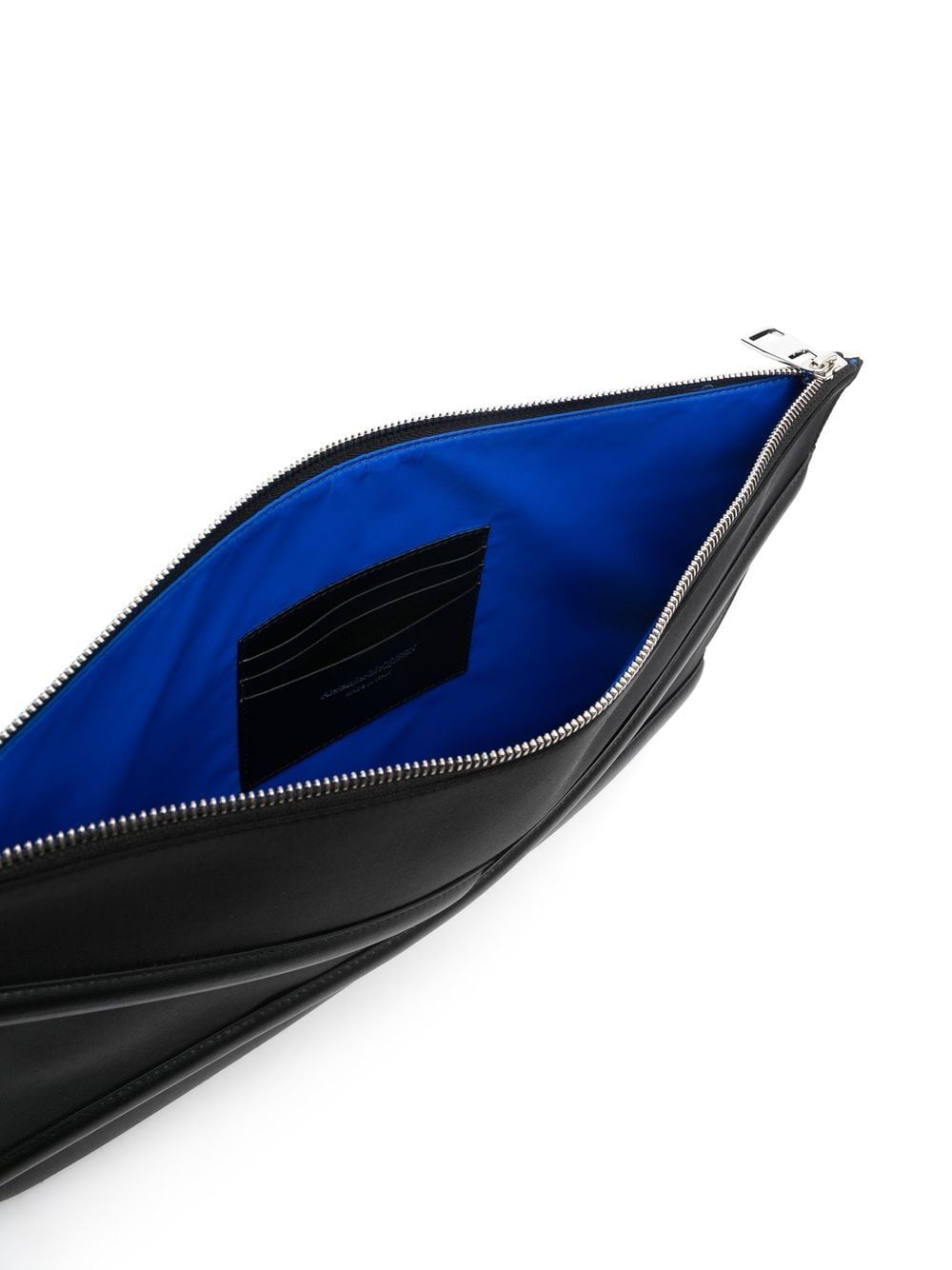 Harness logo-print clutch bag from Alexander McQueen featuring black, lambskin, leather trim, logo print to the front, top zip fastening, main compartment, internal card slots and full lining.