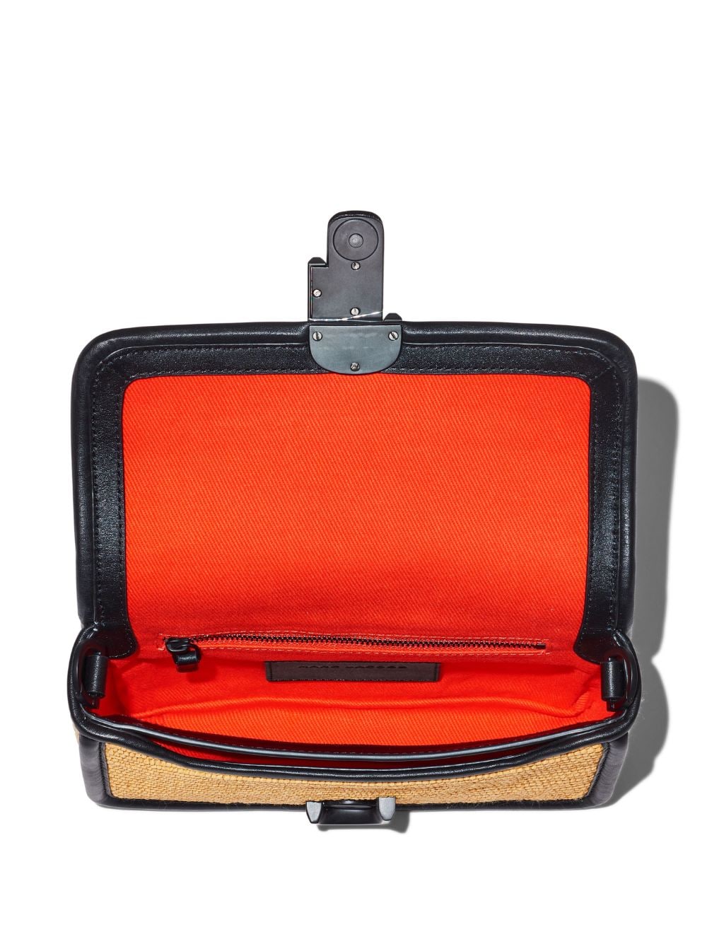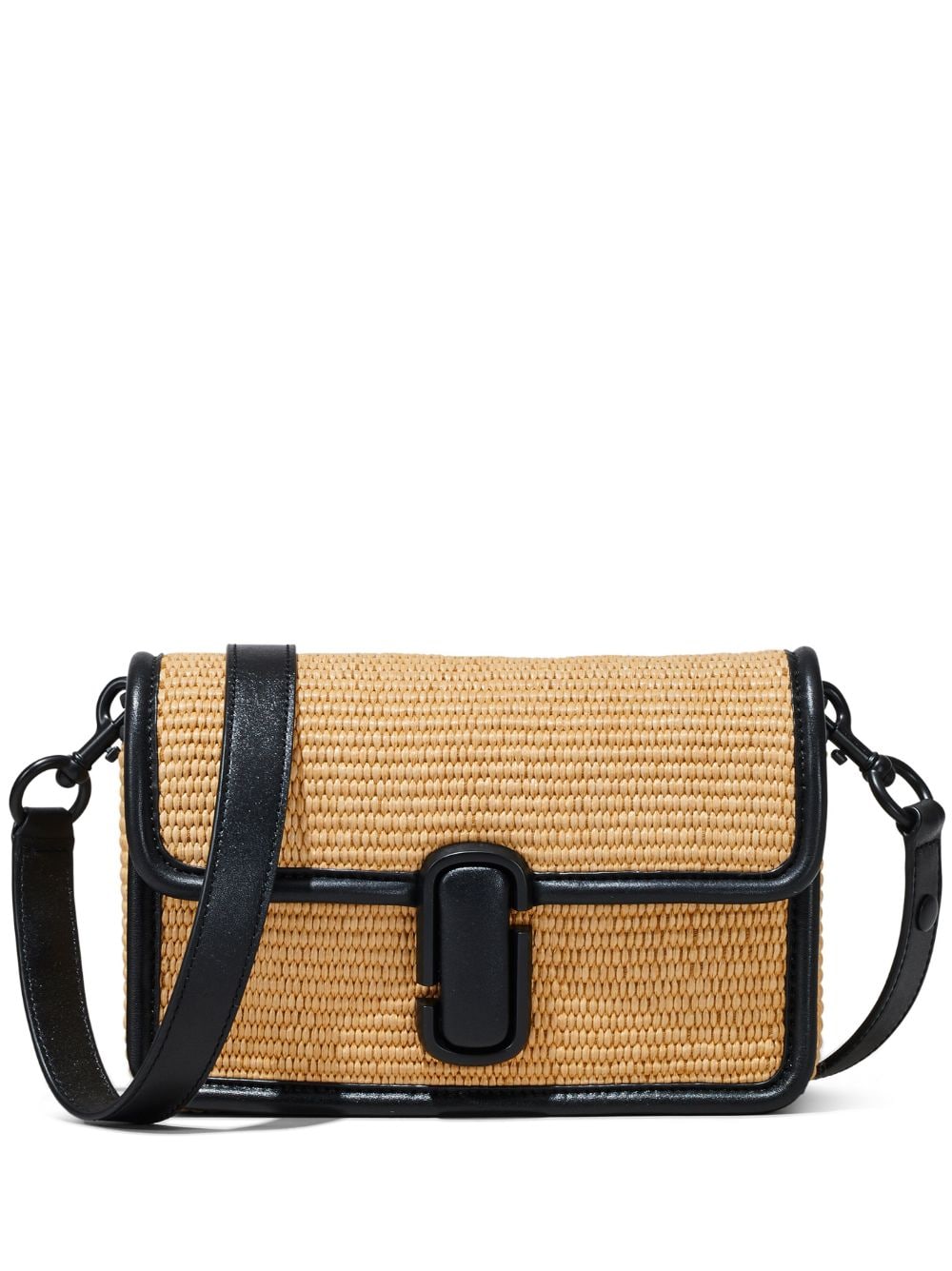 • Presented in a woven raffia design, this shoulder bag by Marc Jacobs is punctuated with contrasting elements that frame the structured silhouette. Featuring a logo plaque at the front, this piece benefits from a foldover top and main compartment.
