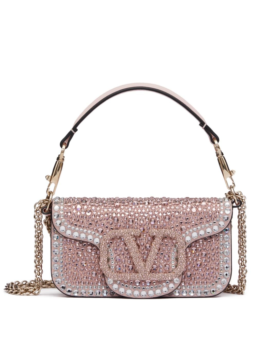 Valentino Garavani’s signature VLogo steals focus on this rose-pink bag. Embellished with glistening sequins and crystals all over, it is fitted with a detachable top handle and a chain-link shoulder strap for versatile styling.